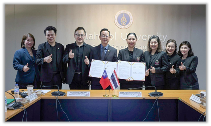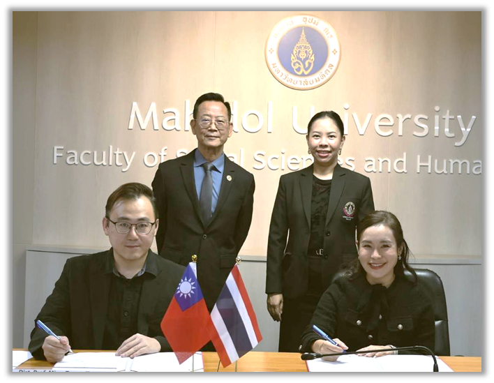 On 30 October 2025, Mahidol University’s Faculty of Social Sciences and Humanities and National Taipei University’s College of Public Affairs signed an MOU to enhance collaboration through joint research, student and researcher exchanges, shared publications, and co-organized conferences — fostering international cooperation and sustainable knowledge exchange between Thailand and Taiwan.