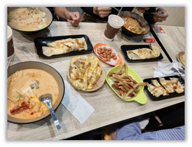 Aylin Topal, Natapol Thongplew, and Ying-Chen Lin enjoyed the night snack with students after the Urban Development class..