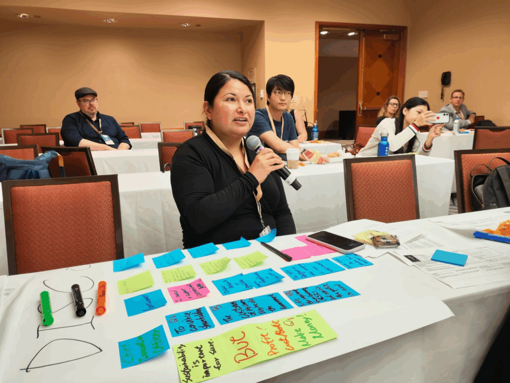 Wanda leads Co-Creating Theories of Change for Sustainable Systems of Consumption and Production through Serious Gaming, an interactive session focused on Theories of Change (ToCs) and how they can be used to answer questions about advancing sustainability and equity in research projects. Photo Courtesy of Ying-Chen Lin.