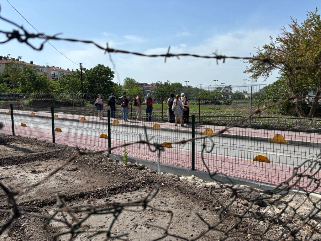 Aylin Topal’s touching photograph from the CO-SFSC project transports us to the historic Yedikule Urban Gardens in Istanbul. These ancient bostans (urban gardens), thriving since the 5th century, have long fed the city. However, the image reveals a modern reality: a newly constructed road slices through the fertile land, and a sports complex encroaches on this fragile heritage. The research team, captured gazing through a construction fence with expressions of concern and resolve, embodies the tension between sustainability and urban expansion. This powerful image reminds us of the sensitive future of sustainable urban agriculture, collective memory, and local food sovereignty.